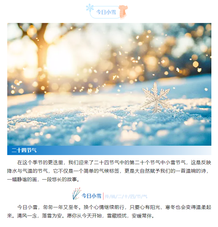 在這個(gè)季節(jié)的更迭里,我們迎來了二十四節(jié)氣中的第二十個(gè)節(jié)氣中小雪節(jié)氣...