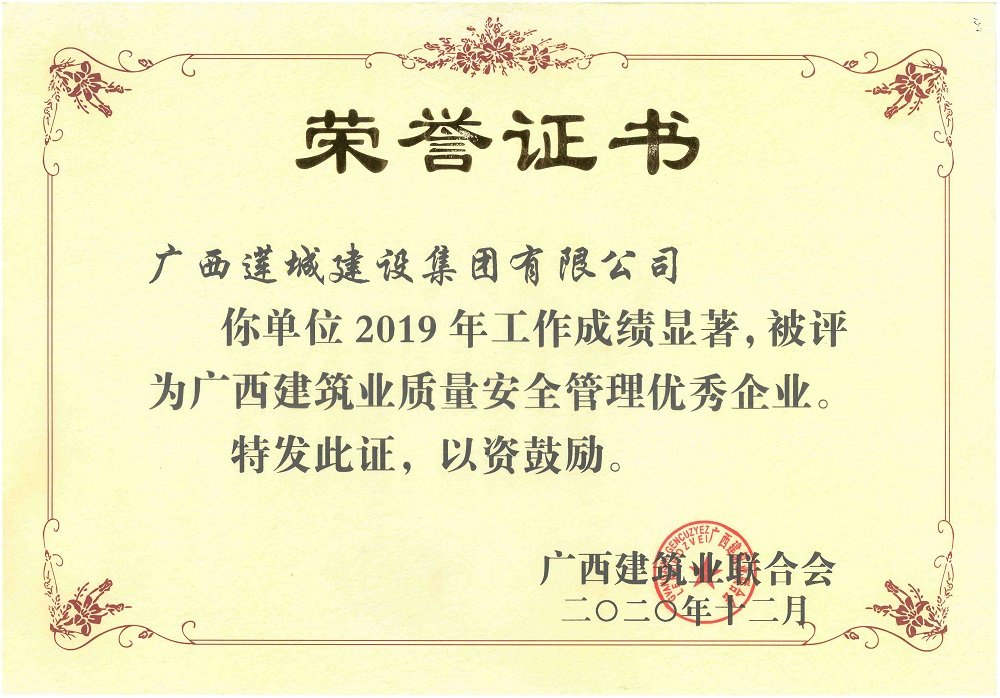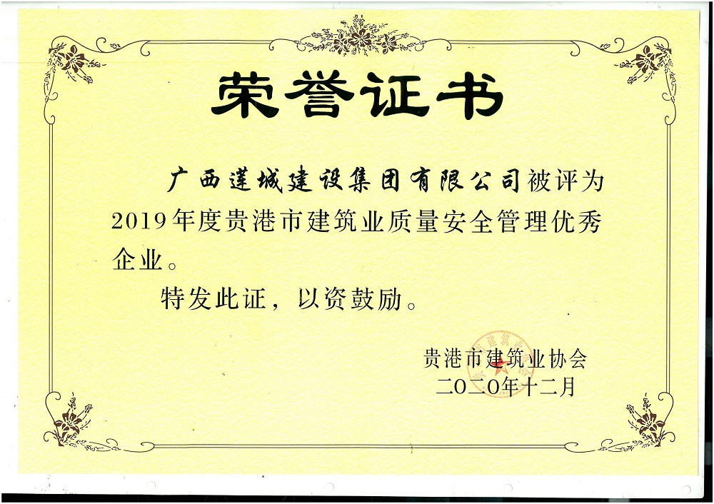 貴港市建筑業(yè)質(zhì)量安全管理優(yōu)秀企業(yè)