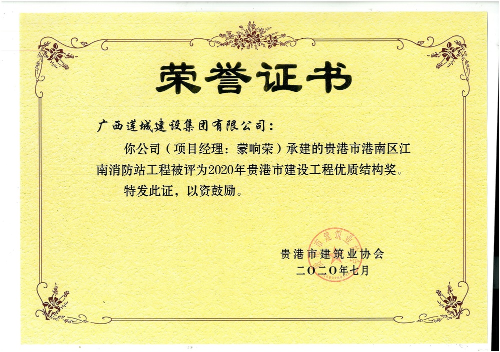 2020年貴港市建設(shè)工程優(yōu)質(zhì)結(jié)構(gòu)獎貴港市港南區(qū)江南消防站工程,蒙響榮