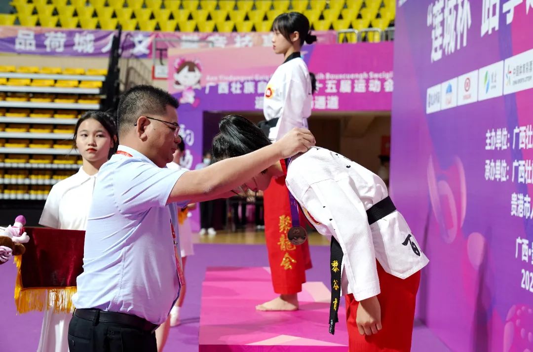 集團(tuán)公司領(lǐng)導(dǎo)出席自治區(qū)第十五屆運(yùn)動(dòng)會(huì)“蓮城杯”跆拳道比賽頒獎(jiǎng)儀式