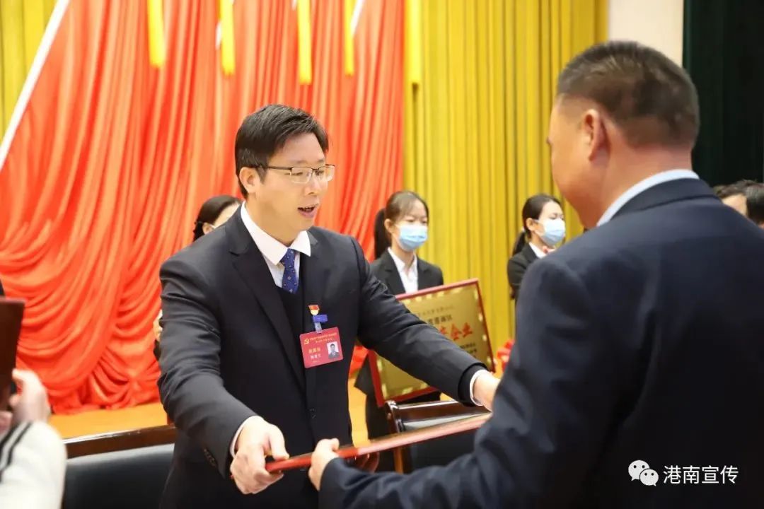 (圖為港南區(qū)委書(shū)記陶建全為公司頒牌)