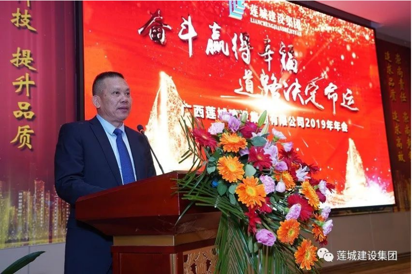 公司譚燕喜董事長首先作開幕致辭,他指出:2019年,公司簽訂合同額26.12億元,完成施工產(chǎn)值31億元,實現(xiàn)稅額1.83億元,成為了貴港市港南區(qū)排名第一的納稅大戶,這是公司把握市場命脈、整合內(nèi)外部資源、創(chuàng)新和健全管理模式、完善服務(wù)體系的成績體現(xiàn)。譚董的致辭,飽含了公司董事會對每一位員工及其家屬的深情厚誼,飽含了公司董事會對關(guān)注和關(guān)心公司發(fā)展的每一位社會賢達的由衷謝意,飽含了公司董事會對公司現(xiàn)在及未來的全力支持和殷切期望!