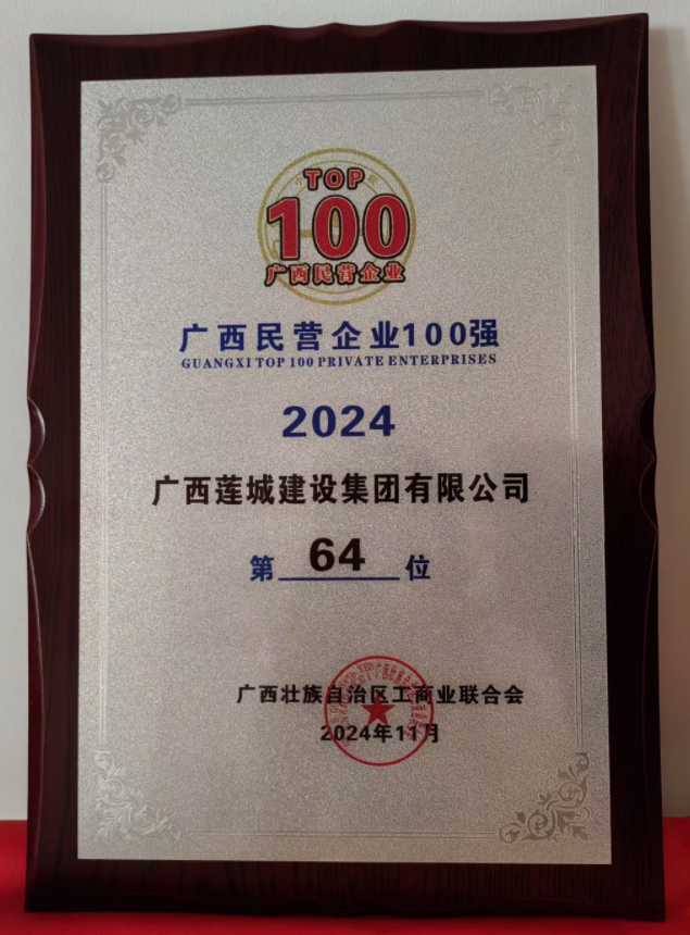 穩(wěn)中有進(jìn)!蓮城建設(shè)集團(tuán)蟬聯(lián)2024廣西民營(yíng)企業(yè)百?gòu)?qiáng)榜單!