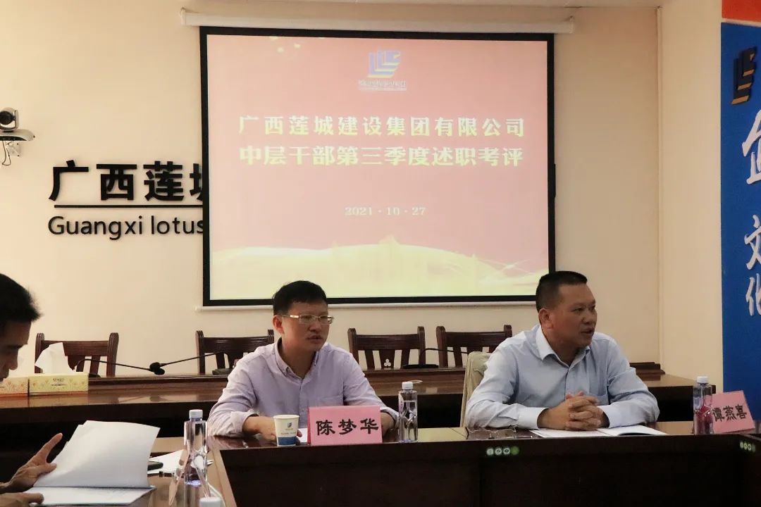 10月27日下午,集團公司在貴港辦公區(qū)一樓會議室召開中層干部2021年第三季度述職考評會議。集團公司總經(jīng)理陳夢華出席會議并作重要講話。董事長譚燕喜,副總經(jīng)理梁惠侃、黃添明,副總經(jīng)理、安全總監(jiān)譚景騰,副總經(jīng)理、總工程師姜紅華,總經(jīng)理助理、經(jīng)營處處長謝喬勇等領導參加。會議由總經(jīng)理助理、經(jīng)營處處長謝喬勇主持。