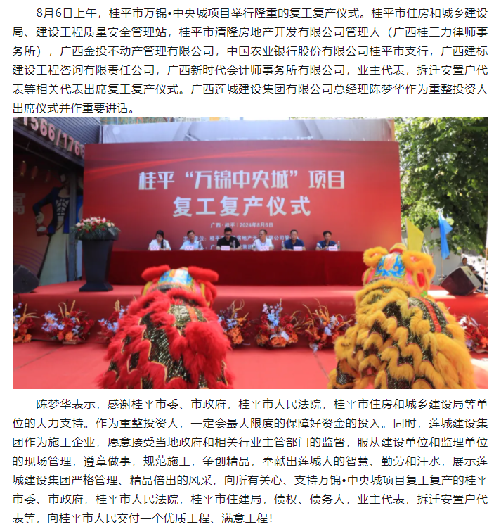8月6日上午,桂平市萬錦?中央城項目舉行隆重的復(fù)工復(fù)產(chǎn)儀式。...