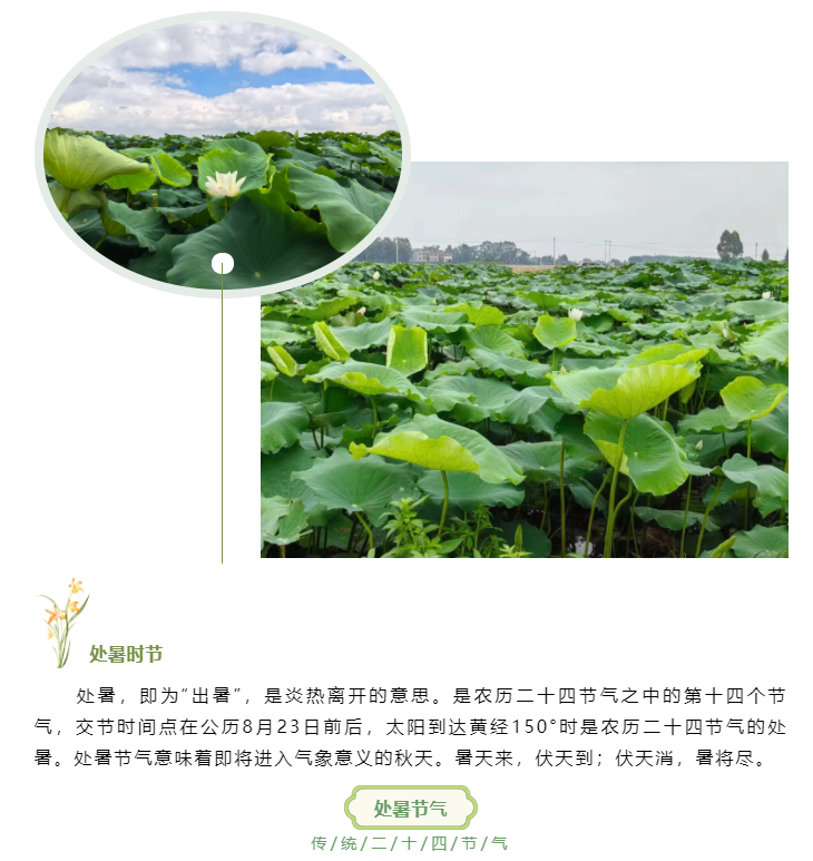 處暑,即為“出暑”,是炎熱離開的意思。是農(nóng)歷二十四節(jié)氣之中的第十四個節(jié)氣,交節(jié)時間點在公歷8月23日前后...
