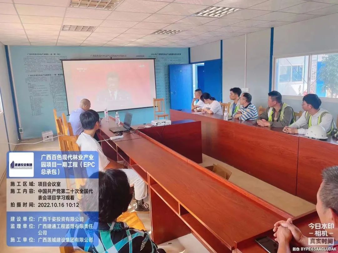 2022年10月16日,中國共產(chǎn)黨第二十次全國代表大會在京召開。集團公司總經(jīng)理陳夢華高度重視,要求貴港辦公區(qū),南寧辦公區(qū),各項目部通過電視、網(wǎng)絡平臺等方式,收聽收看黨的二十大開幕式,認真聽取習近平總書記在會上作出的報告。集團公司在總部設立主會場,在各項目部設立分會場。集團公司總經(jīng)理陳夢華和領導班子成員譚燕喜、姜紅華、譚景騰、謝喬勇等在主會場參加收聽收看活動。