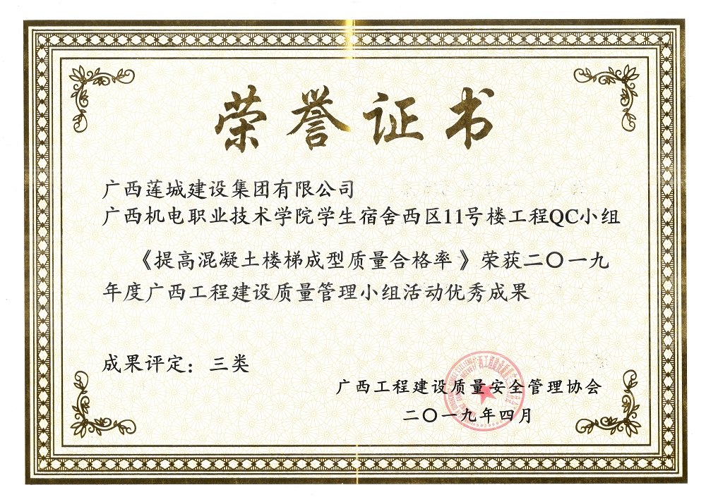 提高圍護(hù)灌注樁施工效率,QC二等獎,貴港市港北區(qū)人民醫(yī)院住院樓建設(shè)項(xiàng)目QC小組成員:黃志剛、陳夢華、譚燕喜、謝喬勇、李承耀、韋建協(xié)、周聲揚(yáng)、覃遠(yuǎn)飛、陶靜雯、劉蕓汐提高旋挖成孔灌注樁施工質(zhì)量合格率,QC三等獎,港南中學(xué)學(xué)生宿舍樓項(xiàng)目部QC小組成員:陳夢華、姜紅華、黃添明、梁志華、陳霖、梁軍、陳熙林、莫智莉、陳遠(yuǎn)琴...