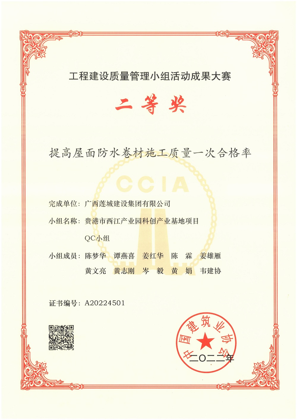 2022年工程建設(shè)質(zhì)量管理小組活動成果大賽QC小組