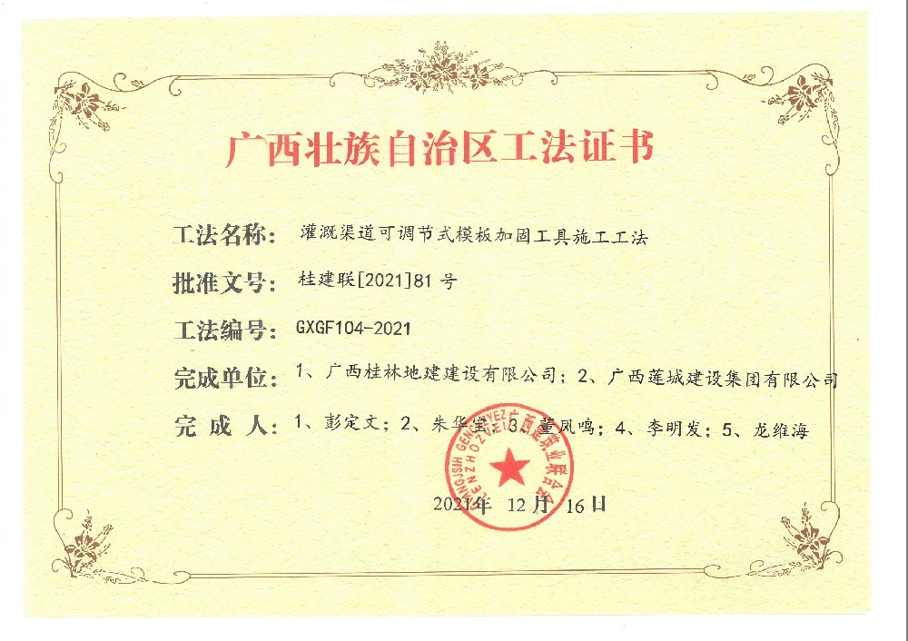 2021年廣西工法證書
