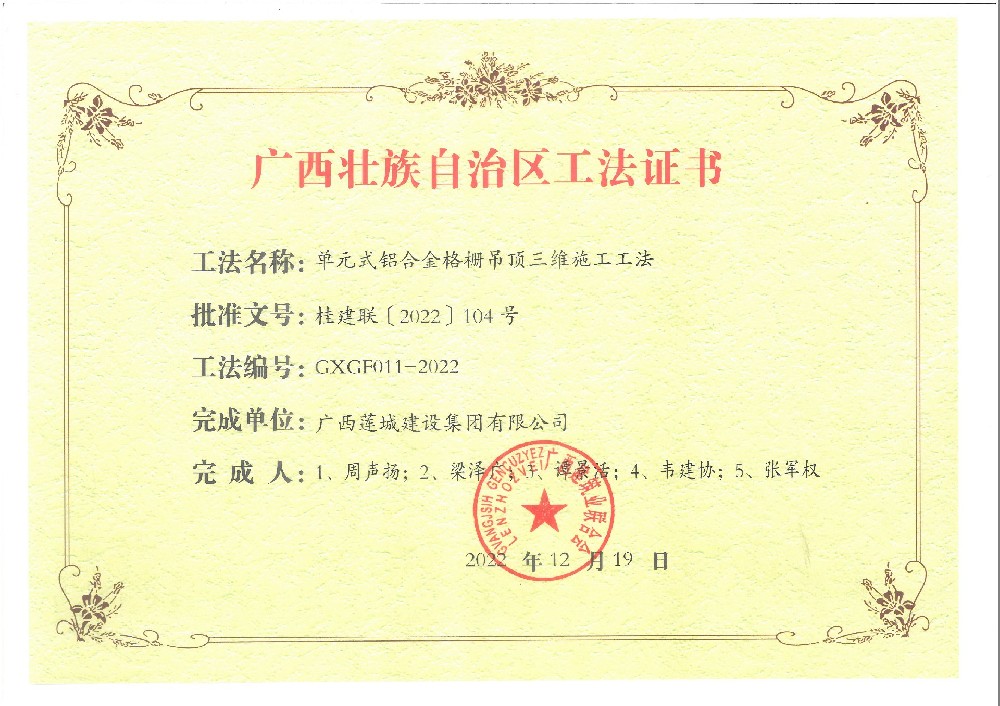 2022年廣西工法證書