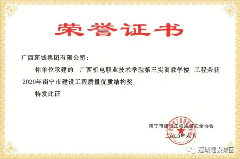 公司項(xiàng)目榮獲2020年南寧市建設(shè)工程質(zhì)量?jī)?yōu)質(zhì)結(jié)構(gòu)獎(jiǎng)