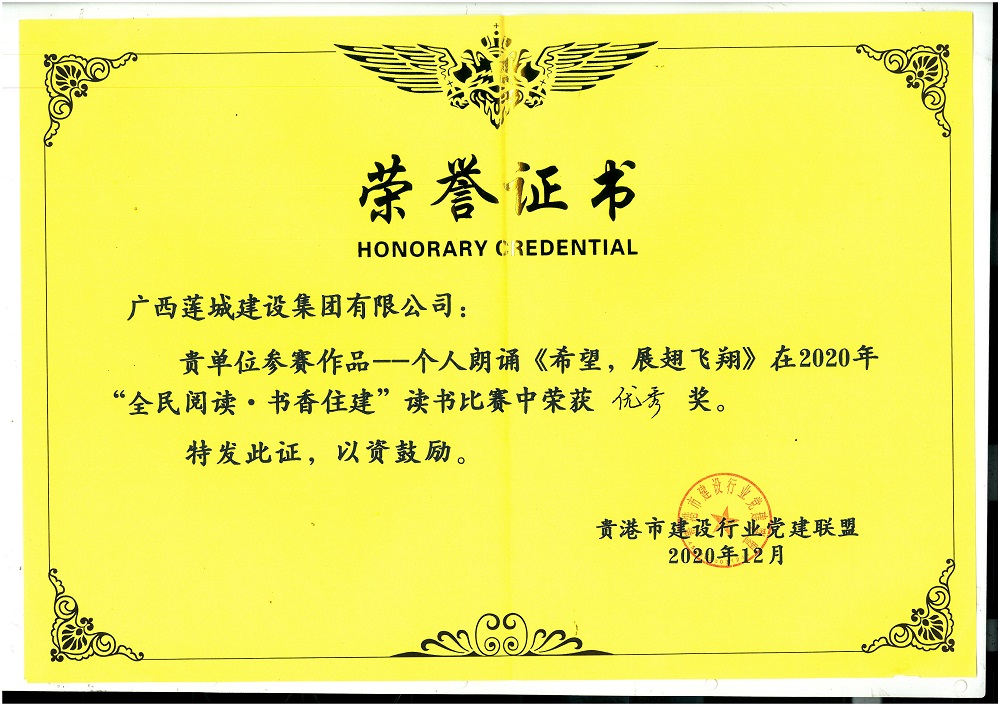 個人朗誦《希望,展翅飛翔》榮獲優(yōu)秀獎