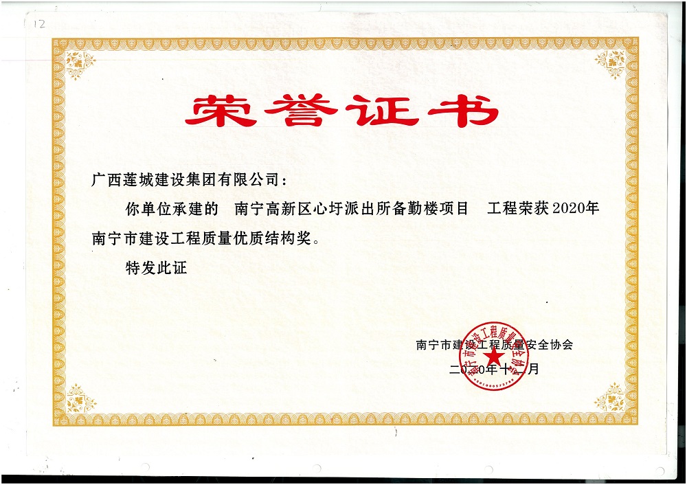 2020年貴港市建設(shè)工程優(yōu)質(zhì)結(jié)構(gòu)獎貴港市港南區(qū)江南消防站工程,蒙響榮