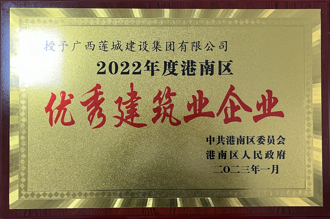這是集團(tuán)公司繼被評(píng)為“2022年度貴港市優(yōu)秀建筑業(yè)企業(yè)”后的又一榮譽(yù)!集團(tuán)公司用質(zhì)量安全樹(shù)品牌,用誠(chéng)信履約筑口碑,以堅(jiān)如磐石的決心,只爭(zhēng)朝夕的勁頭,堅(jiān)忍不拔的毅力,一步一個(gè)腳印地奮發(fā)進(jìn)取,為加快將港南建設(shè)成為珠西經(jīng)濟(jì)帶和平陸運(yùn)河經(jīng)濟(jì)帶港產(chǎn)城高質(zhì)量融合發(fā)展示范區(qū),奮力打造富美康壽的現(xiàn)代化新港南,為貴港市加快建成現(xiàn)代化“兩帶兩城”貢獻(xiàn)蓮城力量。