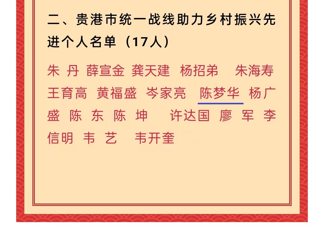 貴港市統(tǒng)一戰(zhàn)線助力鄉(xiāng)村振興先進(jìn)個人