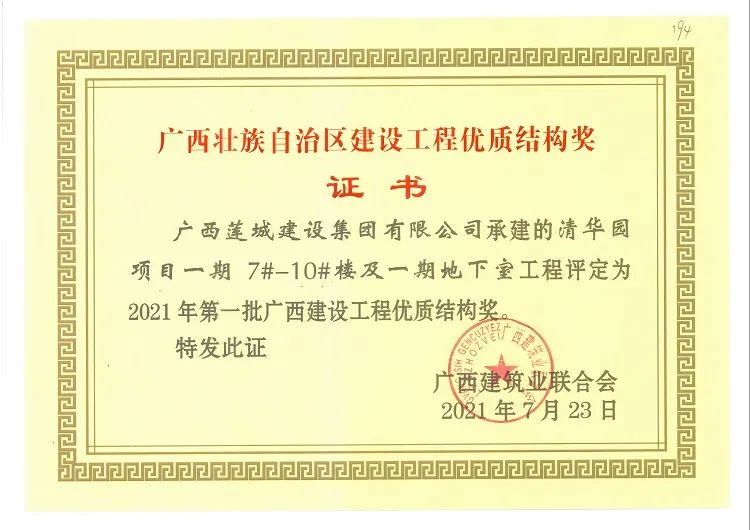 2021年第一批廣西建設(shè)工程優(yōu)質(zhì)結(jié)構(gòu)獎