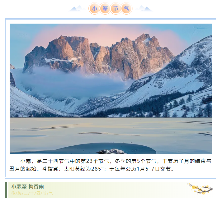 小寒,是二十四節(jié)氣中的第23個節(jié)氣,冬季的第5個節(jié)氣,干支歷子月的結束與丑月的起始。斗指癸;太陽黃經為285°;于每年公歷1月5-7日交節(jié)。...