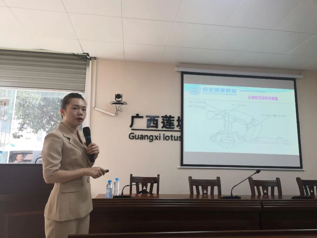 培訓班上,宣教老師趙婷婷就“落實安全責任,推動安全發(fā)展”為主題,給集團公司全體人員開展公益宣教。宣教內(nèi)容主要有預防和應對突發(fā)事故安全知識,如CPR急救術(shù)、突發(fā)暈倒、受傷出血等。針對辦公室職工常見慢性病、職業(yè)病預防知識、干部職工“三減三健”健康生活方式、職工心理健康疏導及室內(nèi)外空氣污染的防護知識等作了深入淺出的詳細講解。