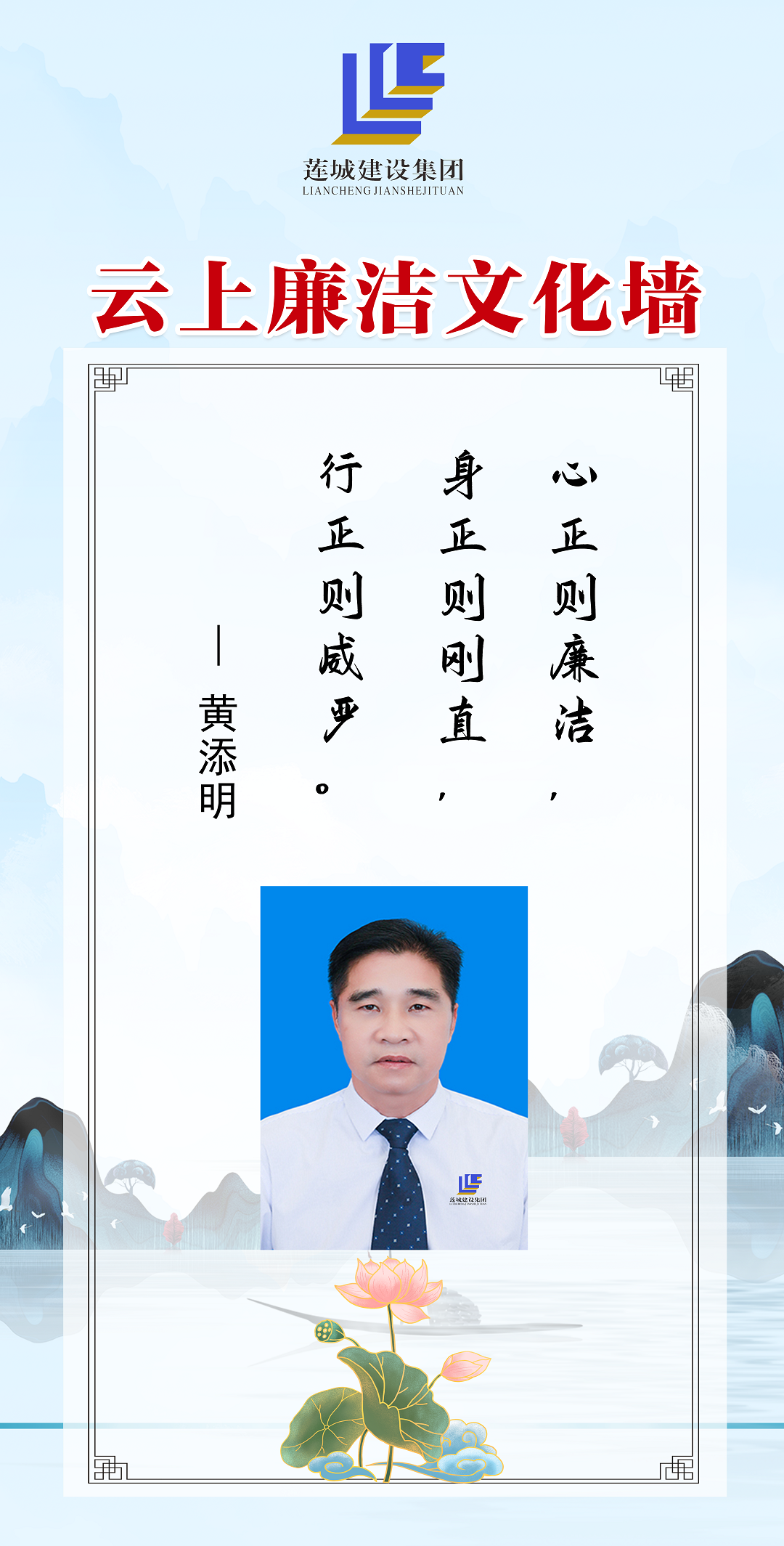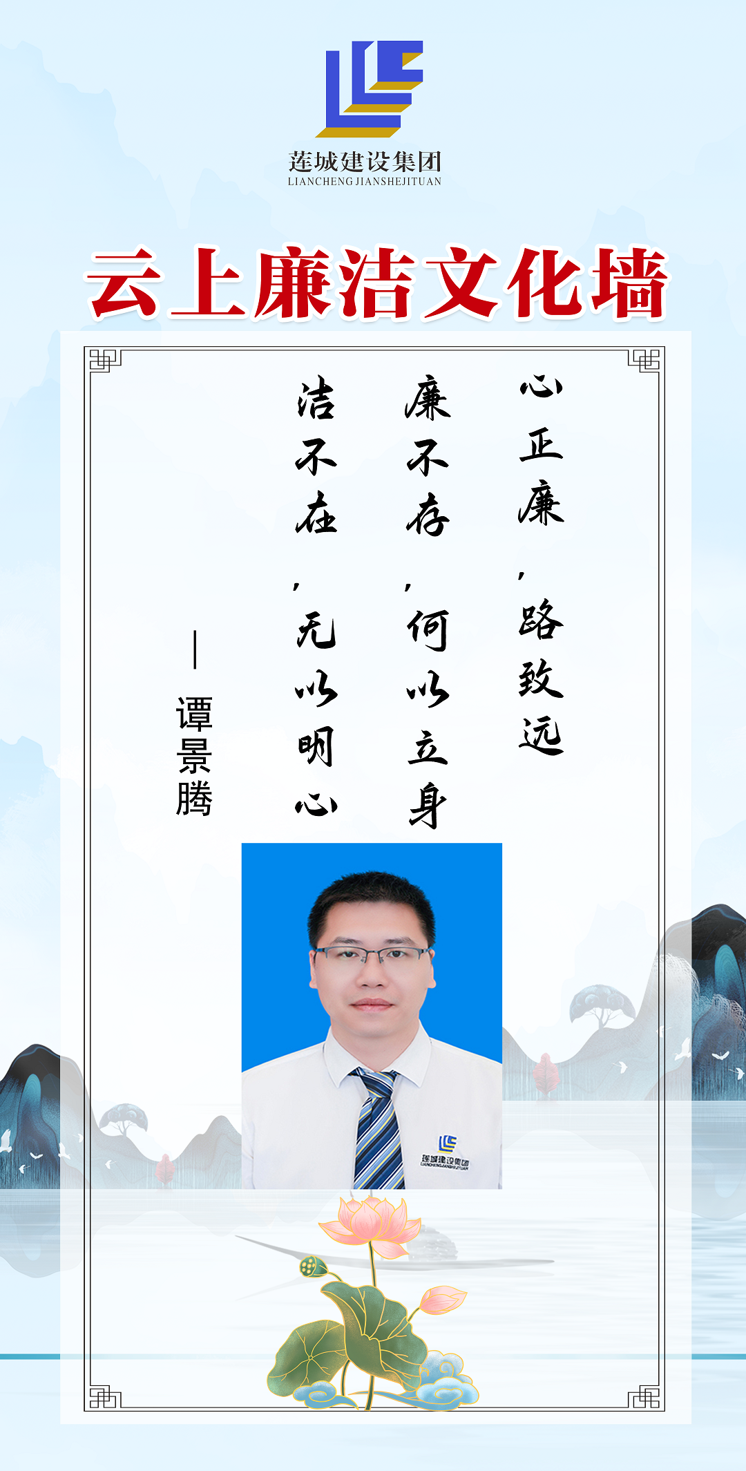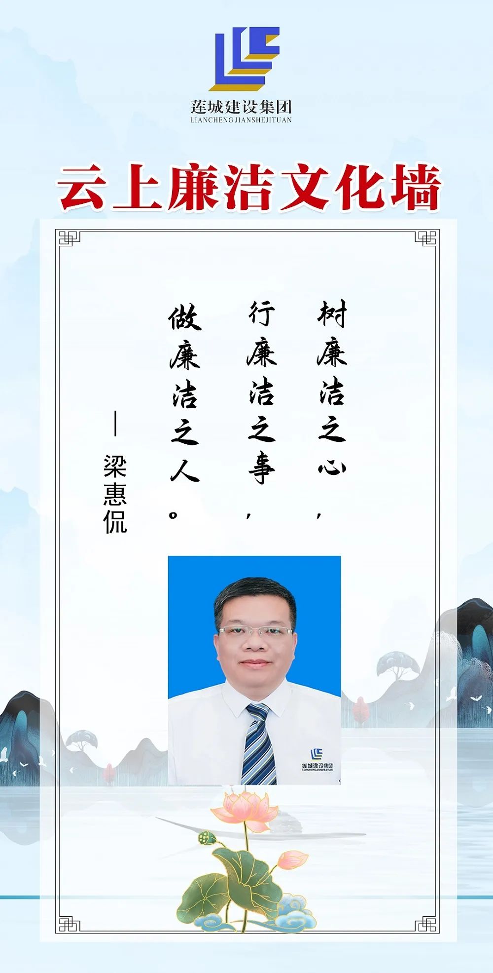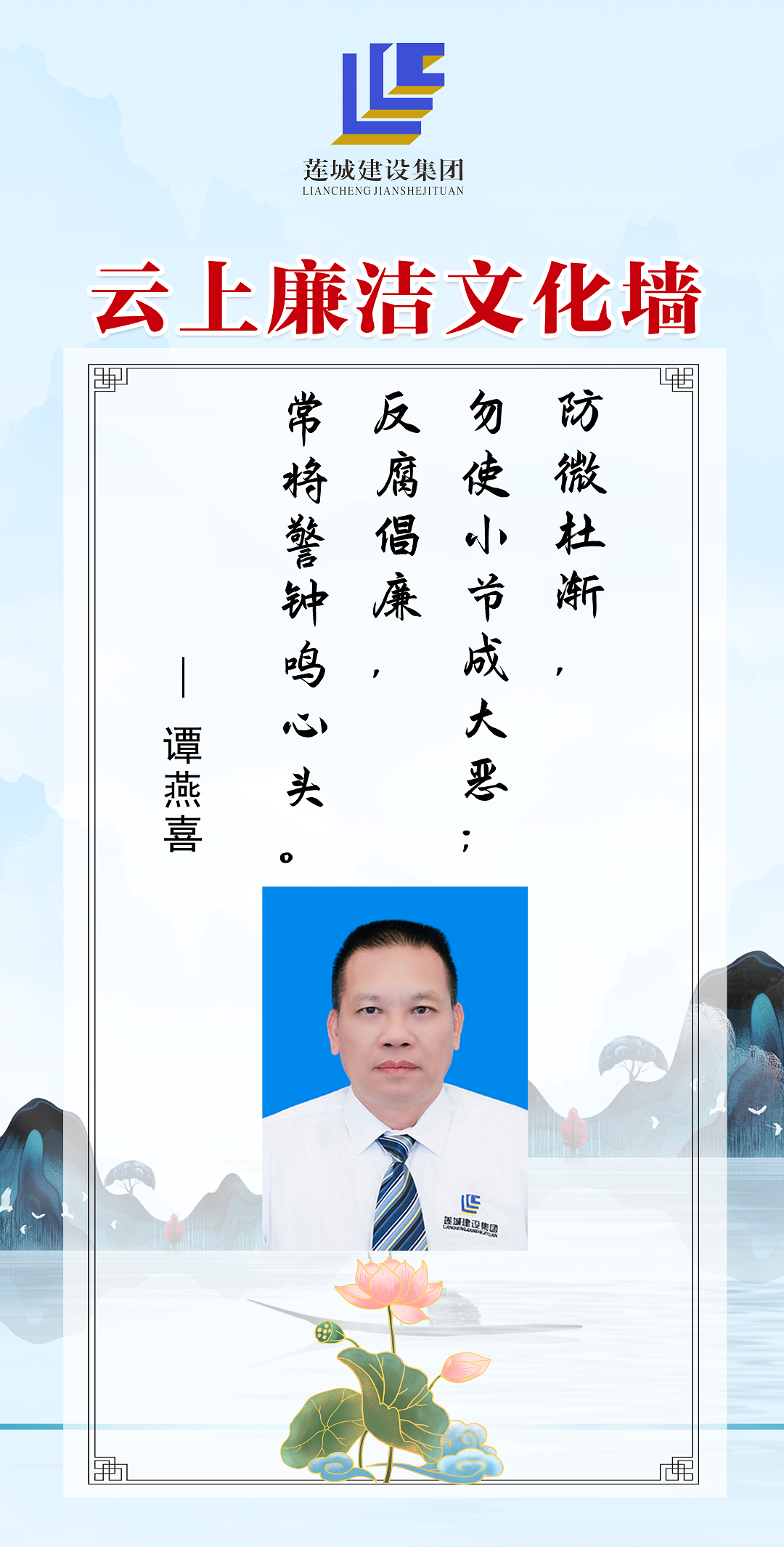 公司領(lǐng)導(dǎo)班子成員以圖文、自述的方式,展現(xiàn)蓮城人積極向上、廉潔自律的精神風(fēng)貌,進(jìn)一步營(yíng)造風(fēng)清氣正、廉潔自律的良好工作氛圍。