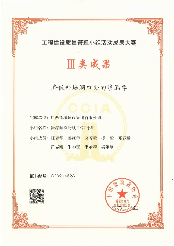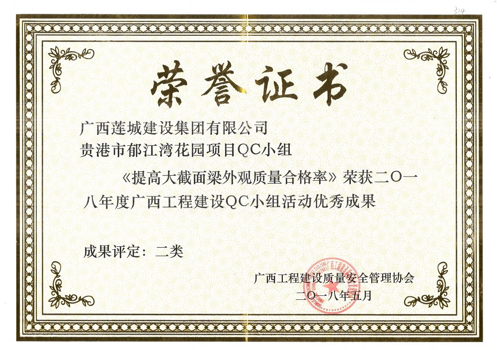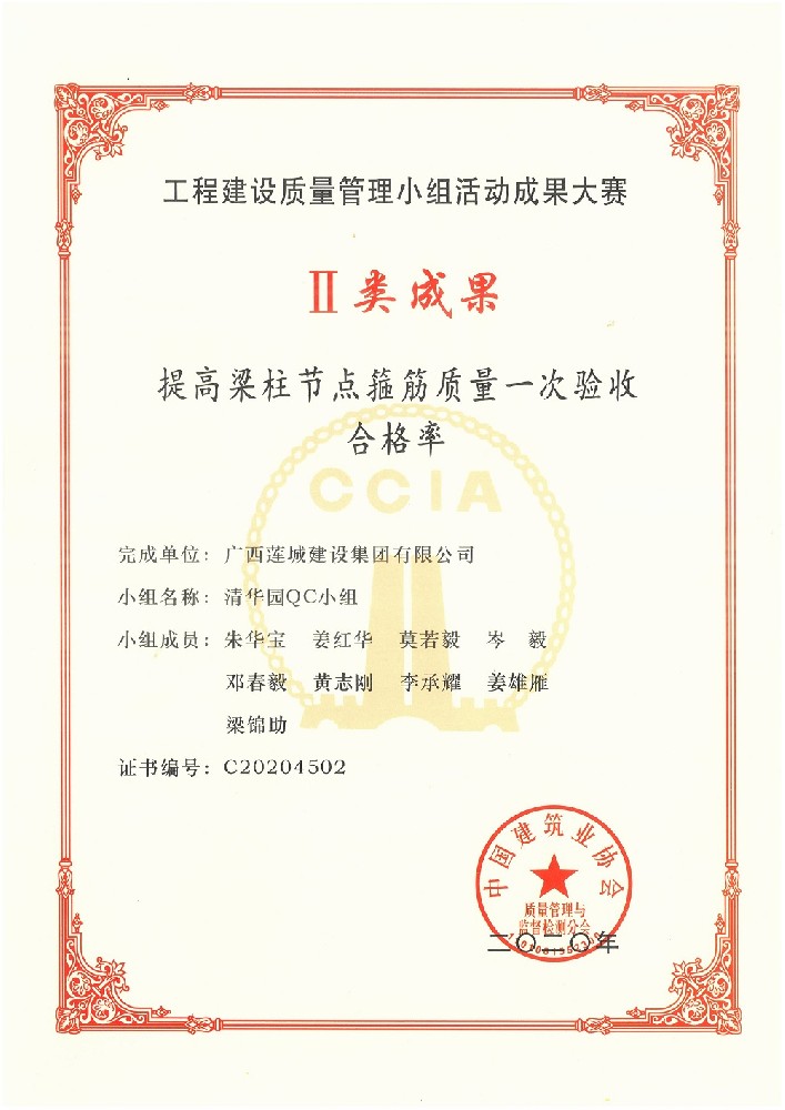 提高圍護(hù)灌注樁施工效率,QC二等獎,貴港市港北區(qū)人民醫(yī)院住院樓建設(shè)項(xiàng)目QC小組成員:黃志剛、陳夢華、譚燕喜、謝喬勇、李承耀、韋建協(xié)、周聲揚(yáng)、覃遠(yuǎn)飛、陶靜雯、劉蕓汐提高旋挖成孔灌注樁施工質(zhì)量合格率,QC三等獎,港南中學(xué)學(xué)生宿舍樓項(xiàng)目部QC小組成員:陳夢華、姜紅華、黃添明、梁志華、陳霖、梁軍、陳熙林、莫智莉、陳遠(yuǎn)琴...