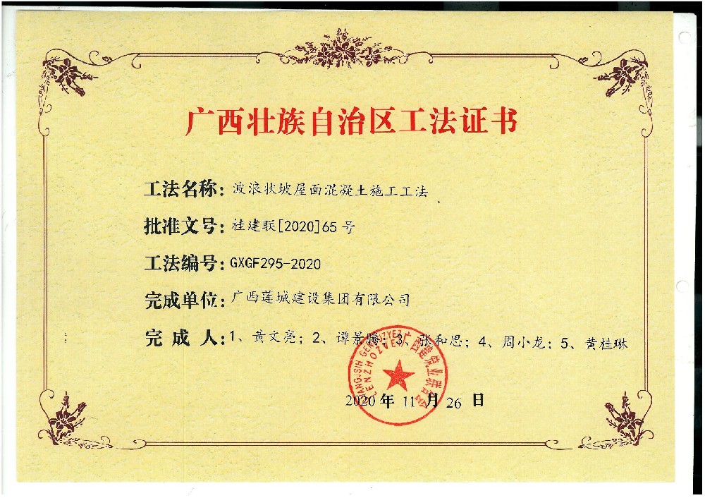 2020年廣西工法證書