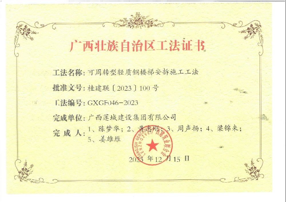 2023年廣西工法證書